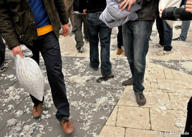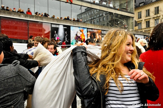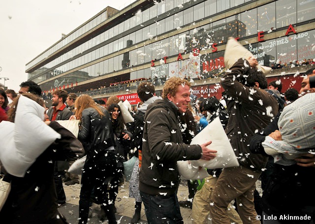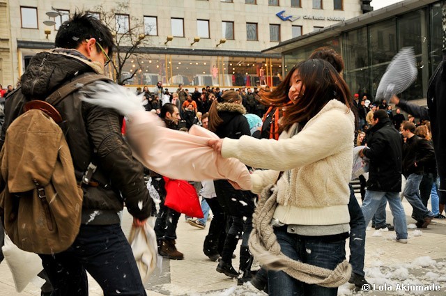 Lola, this is great! I got feather-covered at the pillow fight in Los Angeles, and seeing these photos really brings home how internatinal International Pillow Fight Day is.