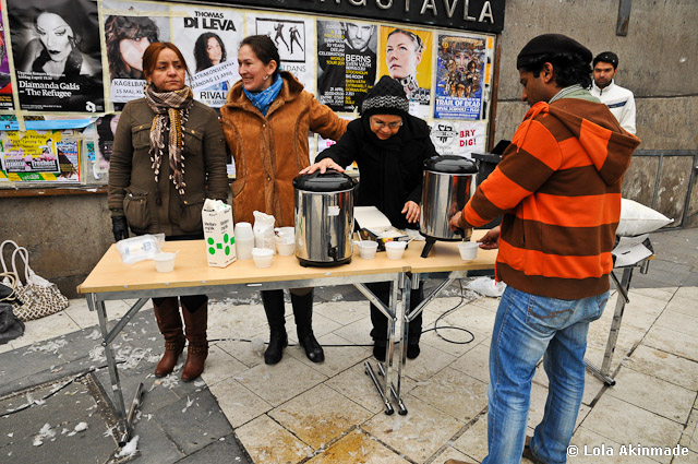 love the ladies with the hot chocolate/ coffee. were they selling it or was it free?