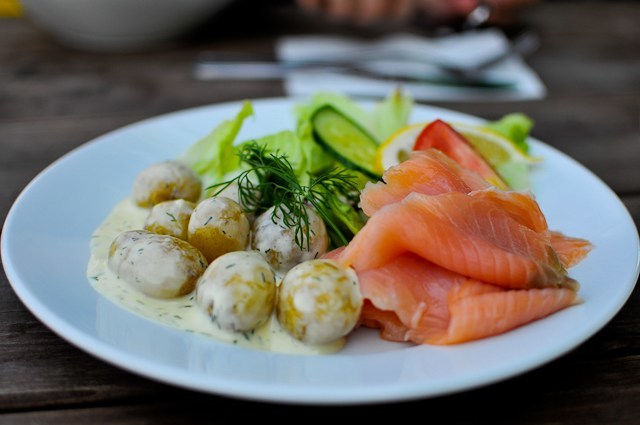 A dish I could literally eat every single day…gravad lax (cured, not smoked which makes it very different from lox in taste) with almond or dill potatoes and gravlaxsås. The taste really is indescribable. It needs to be tried.